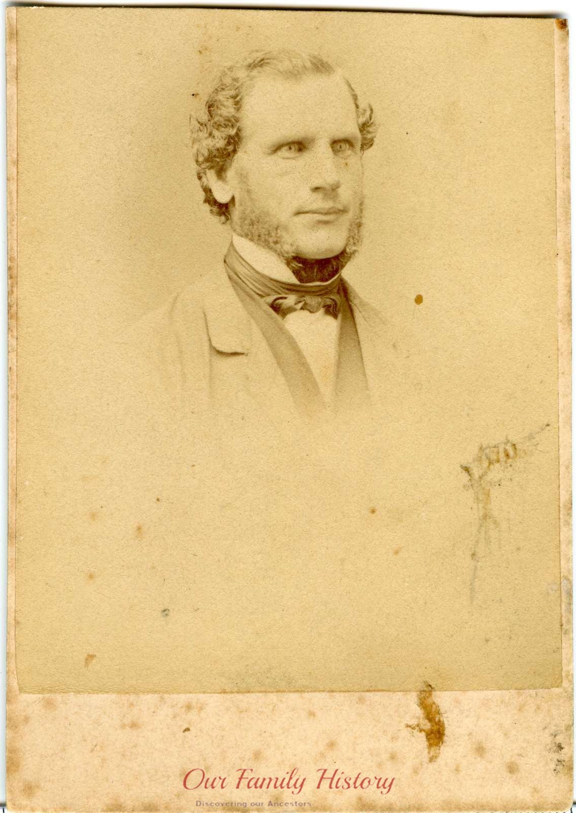 Of North Dumfries, Ontario Canada. Immigrated from Stranraer, Wigtownshire, Scotland. (Written on back) Taken prior to John's death in 1869. c. 1864